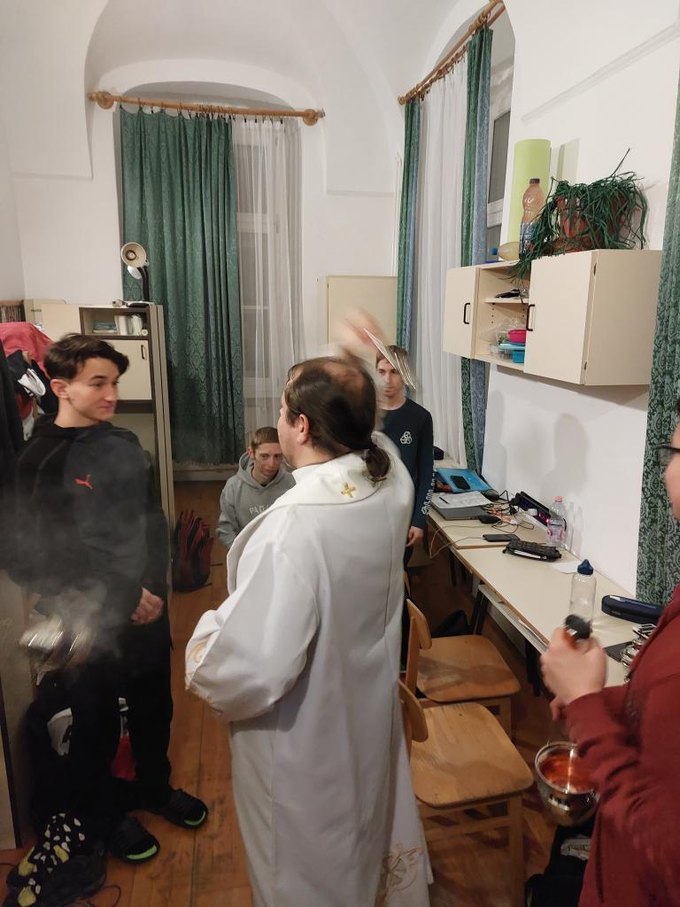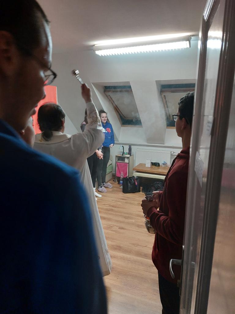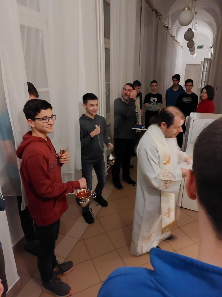 Január 17-én lelki igazgatónk, Darnai János atya körbejárta az épület minden helyiségét és megáldotta a benne lakókat és dolgozókat, lelkes segítőinek a közreműködésével.