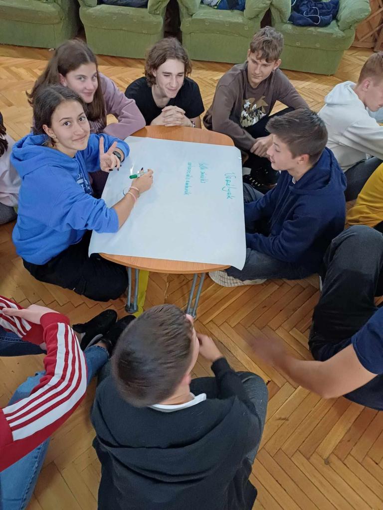 A foglalkozás végére elkészült együttműködésük gyümölcse, egy kapcsolódási modell, amely az összefogás, az egymásra figyelés és a közösen végzett munka élményével ismertette meg a diákokat.